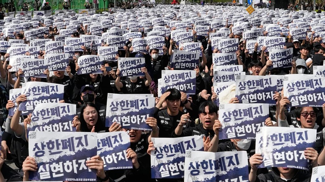 Milhares de trabalhadores da Samsung Electronics protestaram em seu complexo de chips na Coreia do Sul, exigindo bônus mais altos e ameaçando greve. A empresa tem registrado lucros recordes, impulsionados pela crescente demanda por chips de memória devido à inteligência artificial. Os manifestantes, que seguravam faixas e cartazes, reuniram-se em Pyeongtaek, pedindo transparência na remuneração e a remoção de limites máximos para bônus. Representantes sindicais estimaram a participação em cerca de 40.000 membros. O sindicato da Samsung, que representa aproximadamente 74.000 funcionários, alega que a empresa não ofereceu compensação adequada, apesar de seu forte desempenho financeiro. A proposta de bônus em ações restritas foi rejeitada, e o sindicato busca a eliminação de tetos para os bônus. Em caso de falha nas negociações com a administração, o sindicato ameaça iniciar uma greve de 18 dias a partir de 21 de maio, o que poderia custar à empresa mais de 1 bilhão de won (aproximadamente 578 milhões de euros) por dia.