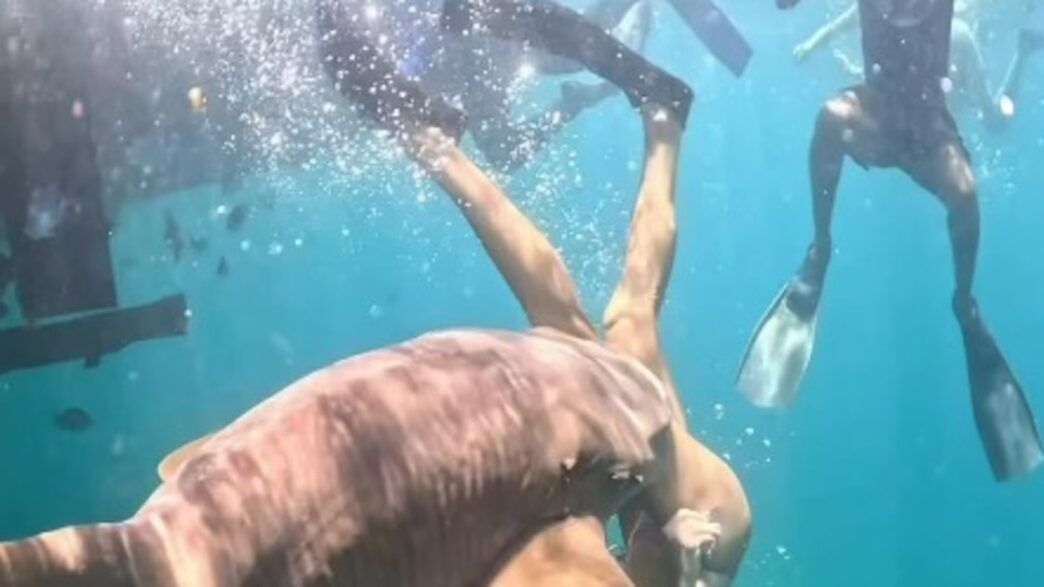 Um turista teve a perna mordida por um tubarão em Fernando de Noronha, Pernambuco. Um vídeo registrou o momento do ataque, que ocorreu em uma área de praia.